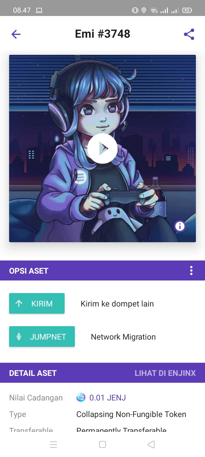- Tunggu beberapa saat, nanti pada enjin wallet kalian akan langsung mendapatkan NFT emi seperti pada gambar di atas.